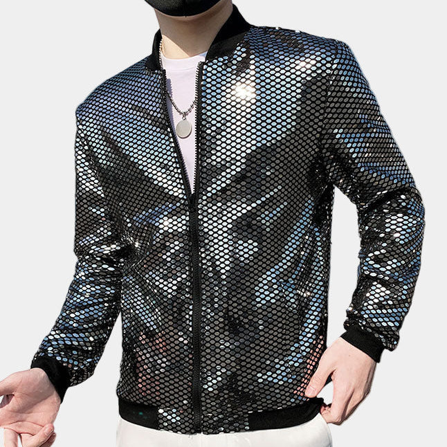 Dit Pailletten Bomberjack met Kraag is gemaakt voor heren die een opvallend en trendy jack...