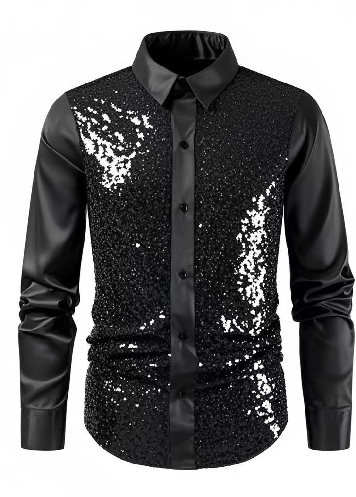 Pailletten Overhemd met Glanzende Mouwen voor Heren