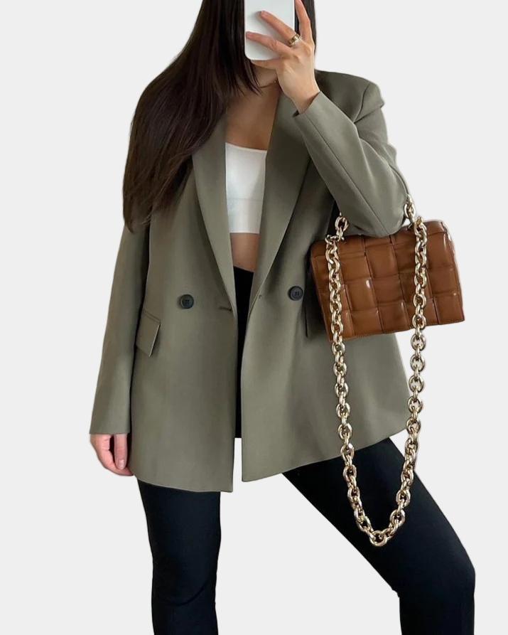 Lange Blazer met Dubbele Rij Knopen voor Dames