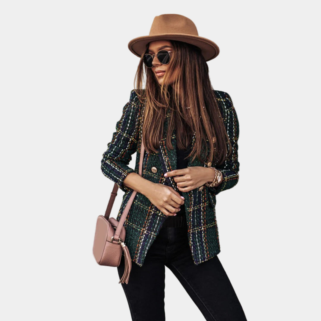 Blazer met Ruitpatroon en Gouden Knoppen voor Dames
