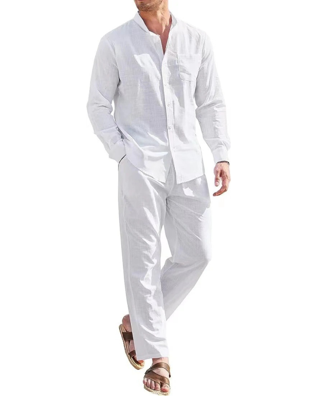 Linnen Set met Lange Mouw Shirt en Broek voor Heren