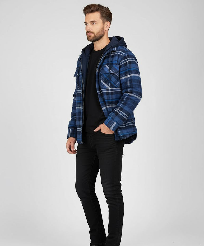 Geruit Overhemd Jas met Capuchon voor Heren