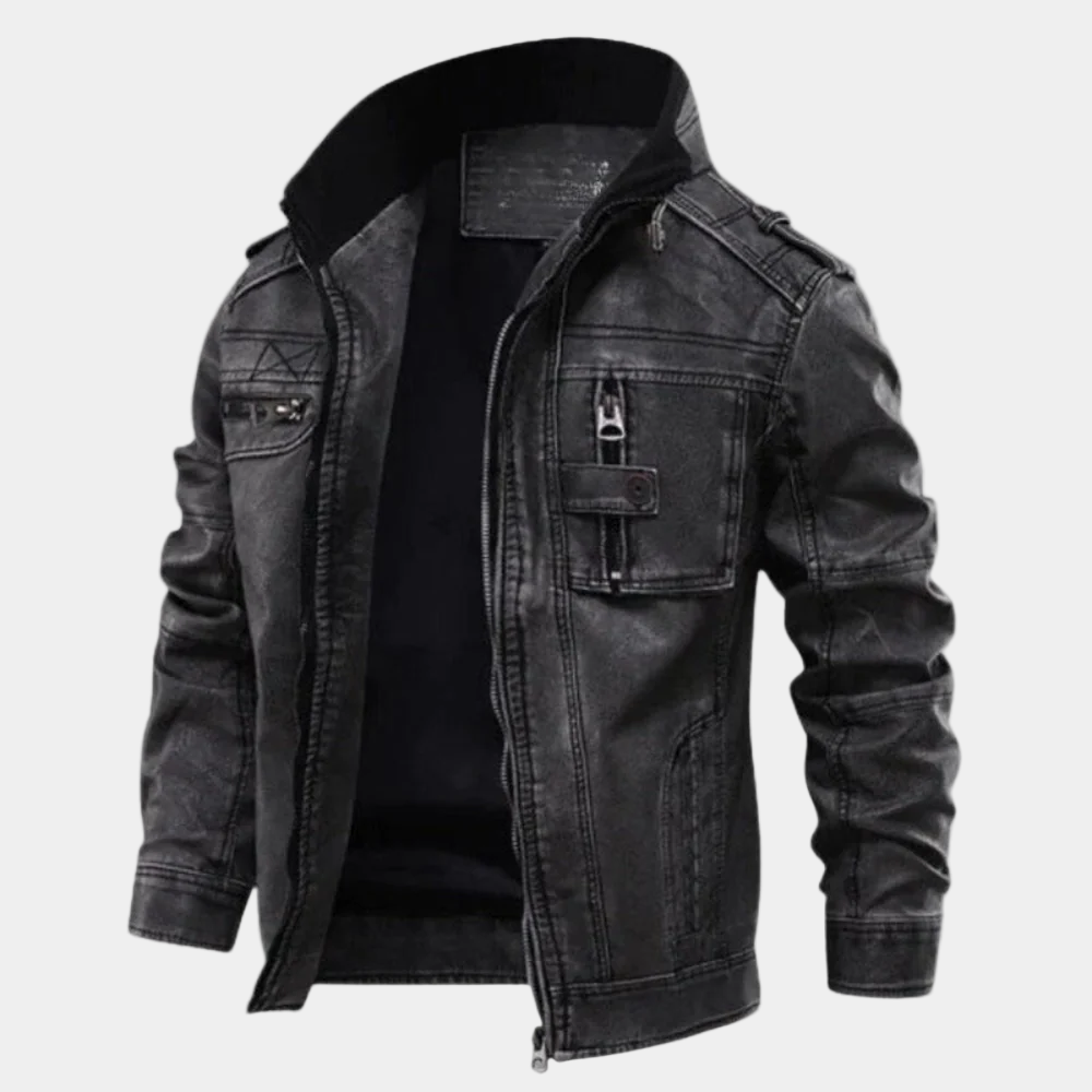 Leren Jas met Opstaande Kraag en Ritszakken voor Heren