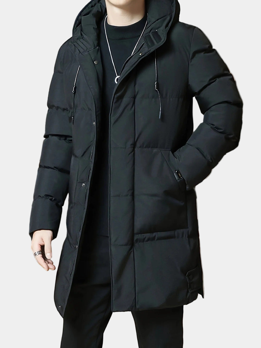 Lange Gewatteerde Winterjas met Capuchon voor Heren