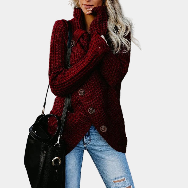 Grof Gebreide Coltrui met Overslag en Knopen voor Dames