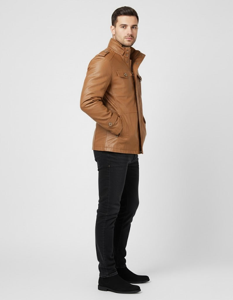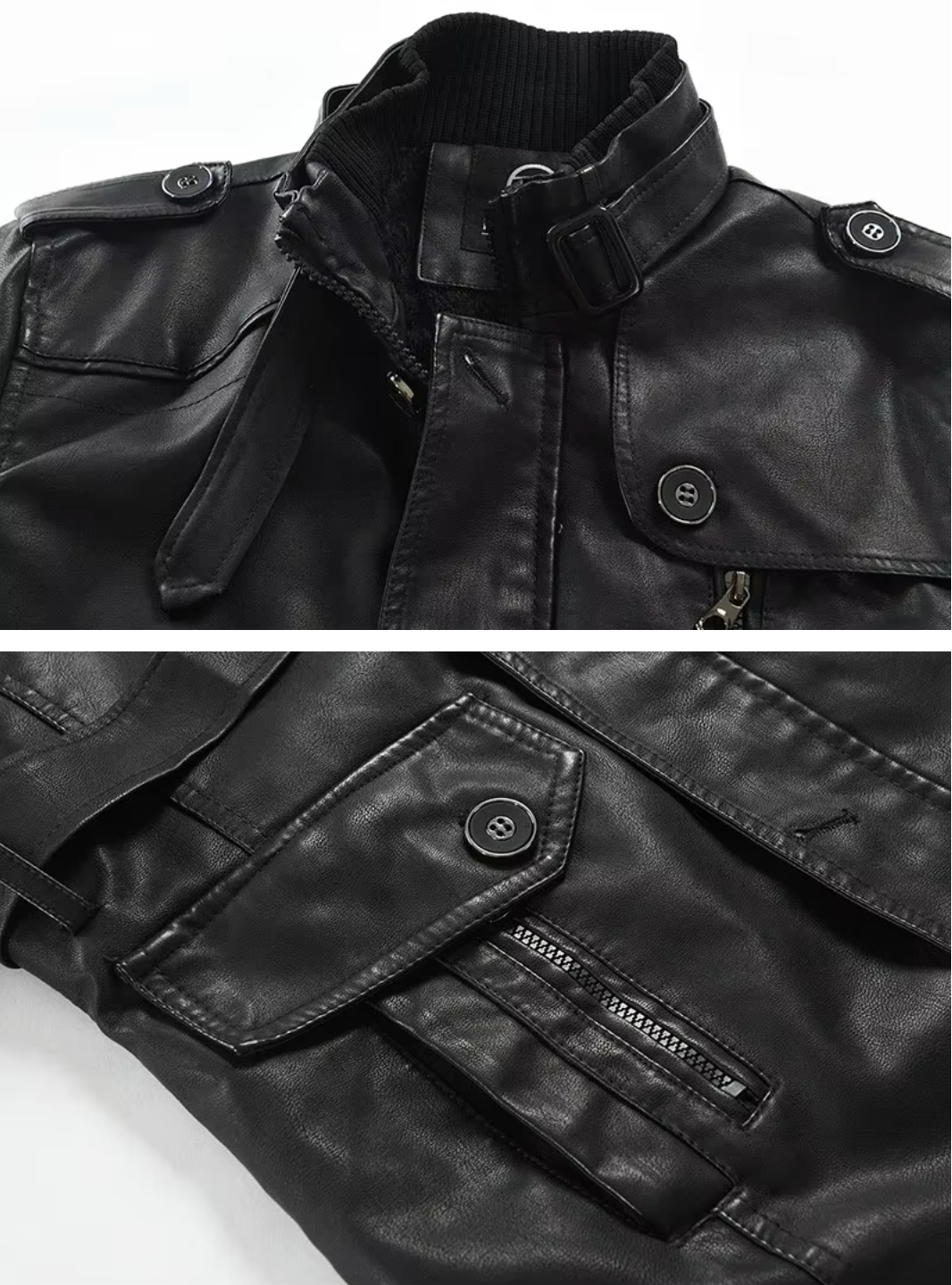 Zoek je een jas die je beschermt tegen de kou? Deze lange leren jas voor heren is gemaakt van leer en heeft een comfortabele pasvorm. Het is een onmisbaar kledingstuk voor de koudere dagen.