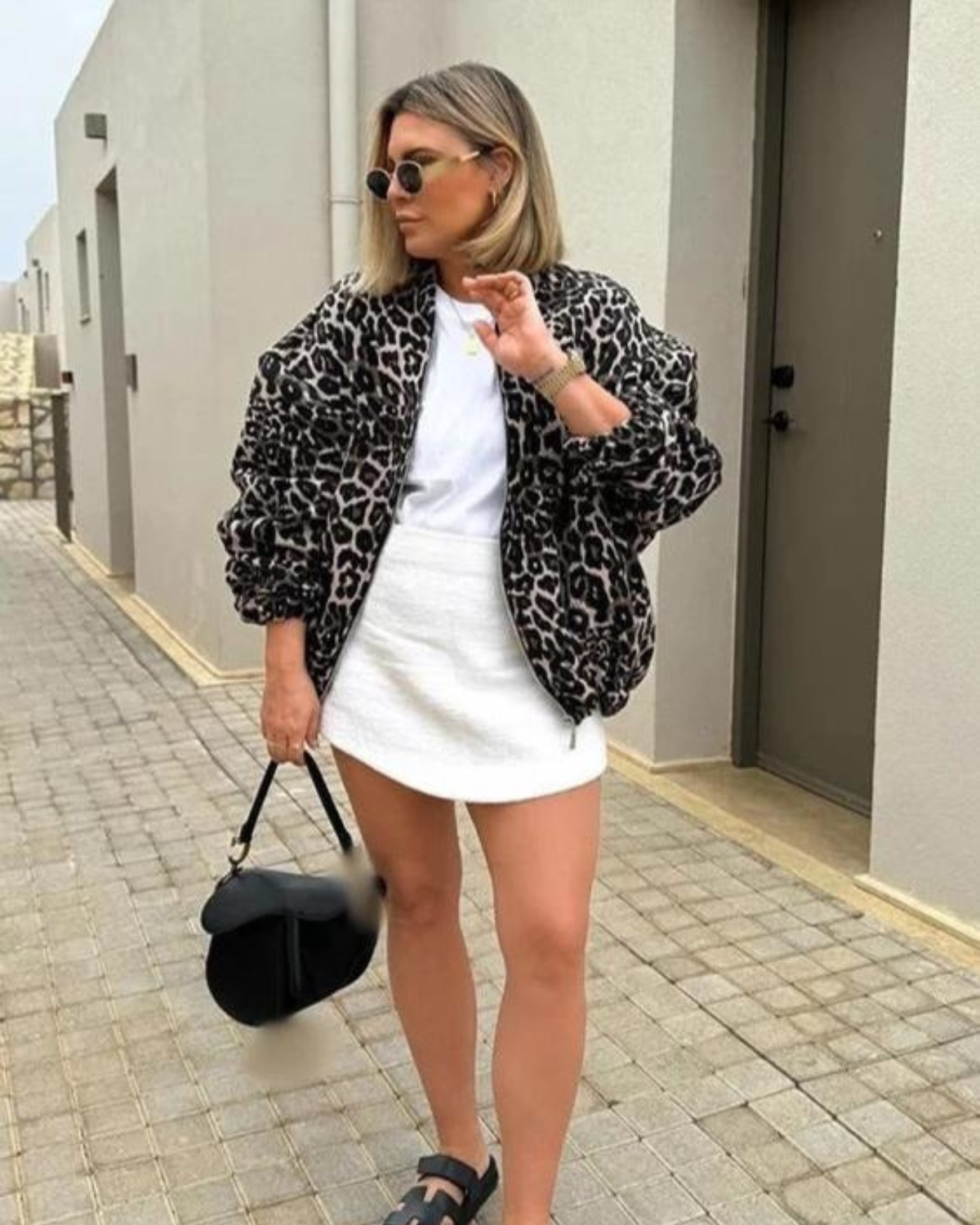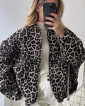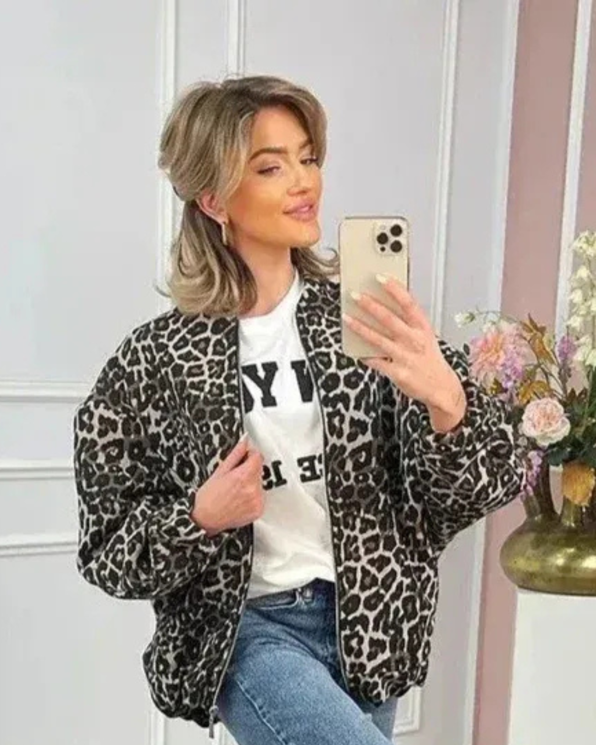 Dit bomberjack met luipaardprint is de perfecte keuze voor dames die een gedurfd en modieus accent aan hun outfit willen toevoegen. Het jack heeft een stoere uitstraling door de opvallende print en het klassieke bombermodel, waardoor het direct in het oog springt. Dankzij de makkelijke pasvorm is het een ideaal kledingstuk om een neutrale outfit direct naar een hoger niveau te tillen. Dit is de ideale jas voor een avondje uit, een dag in de stad of een modieuze afspraak met vriendinnen.