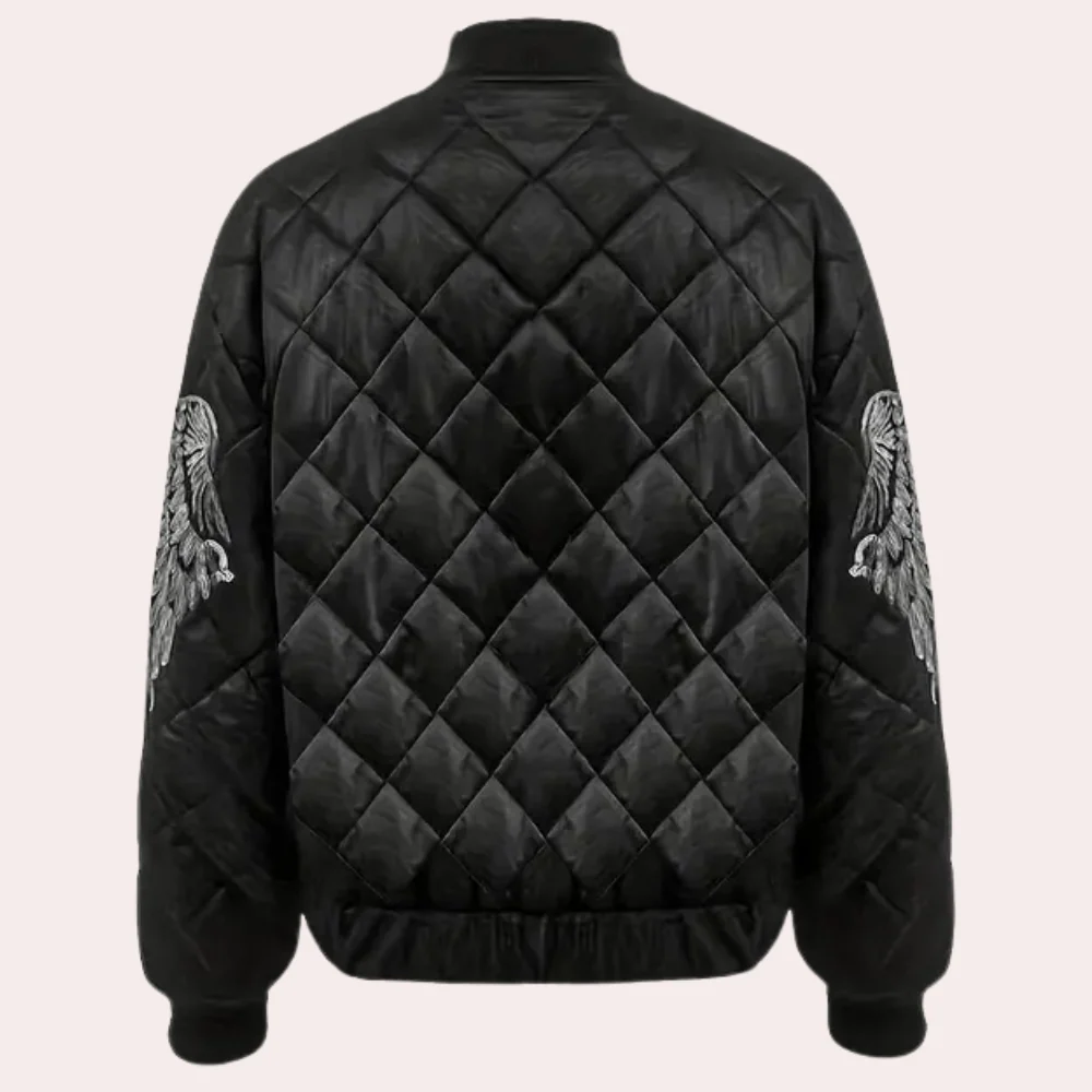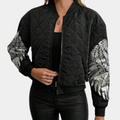 Doorgestikt Bomberjack met Zilveren Vleugeldetails voor Dames