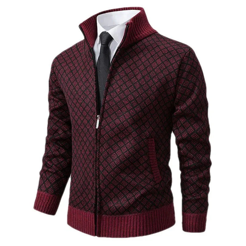 Gebreid Vest met Ruitpatroon en Opstaande Kraag voor Heren
