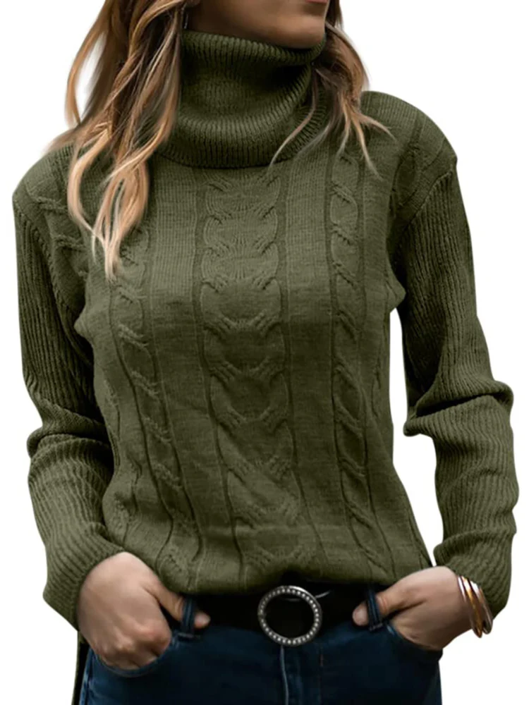 Deze gebreide coltrui is gemaakt voor dames die een warme en comfortabele trui zoeken met een klassiek detail. De trui is gebreid en heeft een opvallend kabelpatroon dat voor een dikke structuur zorgt. De coltrui is hoog en houdt de nek en hals goed warm. De pasvorm is comfortabel en niet te strak.