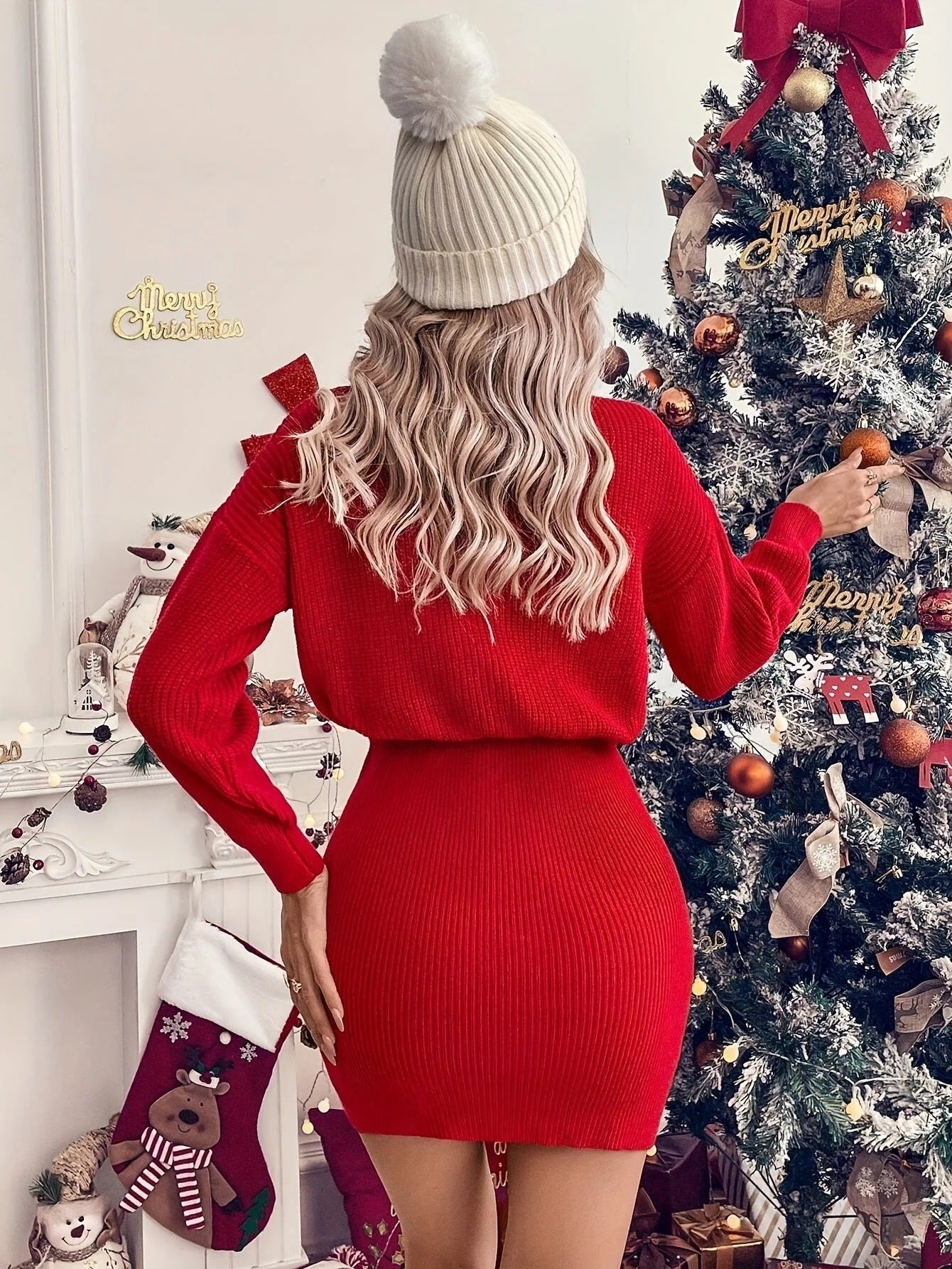 Deze Gebreide Kersttrui Jurk is gemaakt voor dames die een warme, comfortabele en complete kerst outfit zoeken. De jurk is dik gebreid, waardoor hij veel warmte biedt. De jurk valt lang en comfortabel als een grote trui. Dit item is een complete outfit voor de feestdagen en kan gemakkelijk gecombineerd worden met een panty of legging.