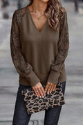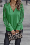 Gebreide Trui met Kanten Raglan Mouwen en V-Hals voor Dames