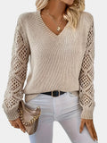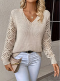 Gebreide Trui met V-hals en Gehaakte Mouwen voor Dames