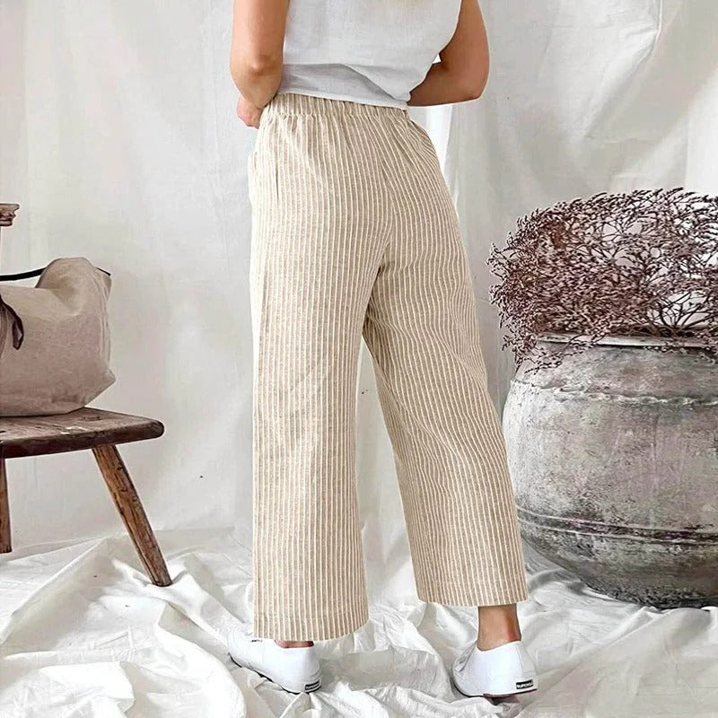 Gestreepte Linnen Broek met Zakken voor Dames