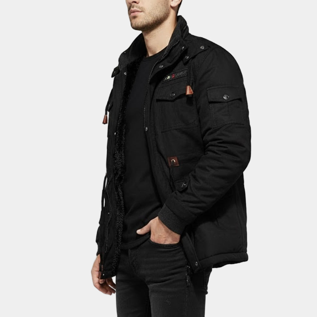 Gevoerde Winterjas in Utility Stijl met Opstaande Kraag voor Heren