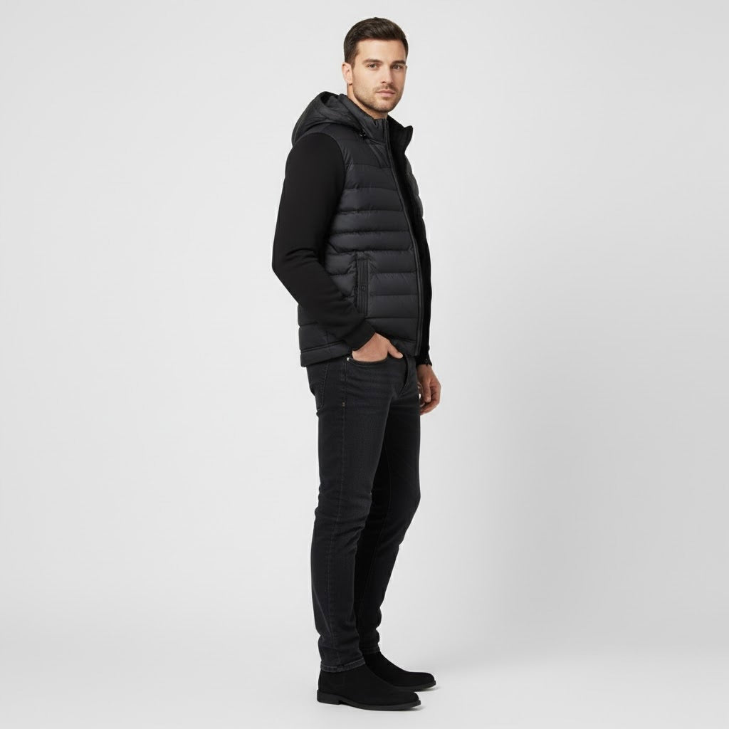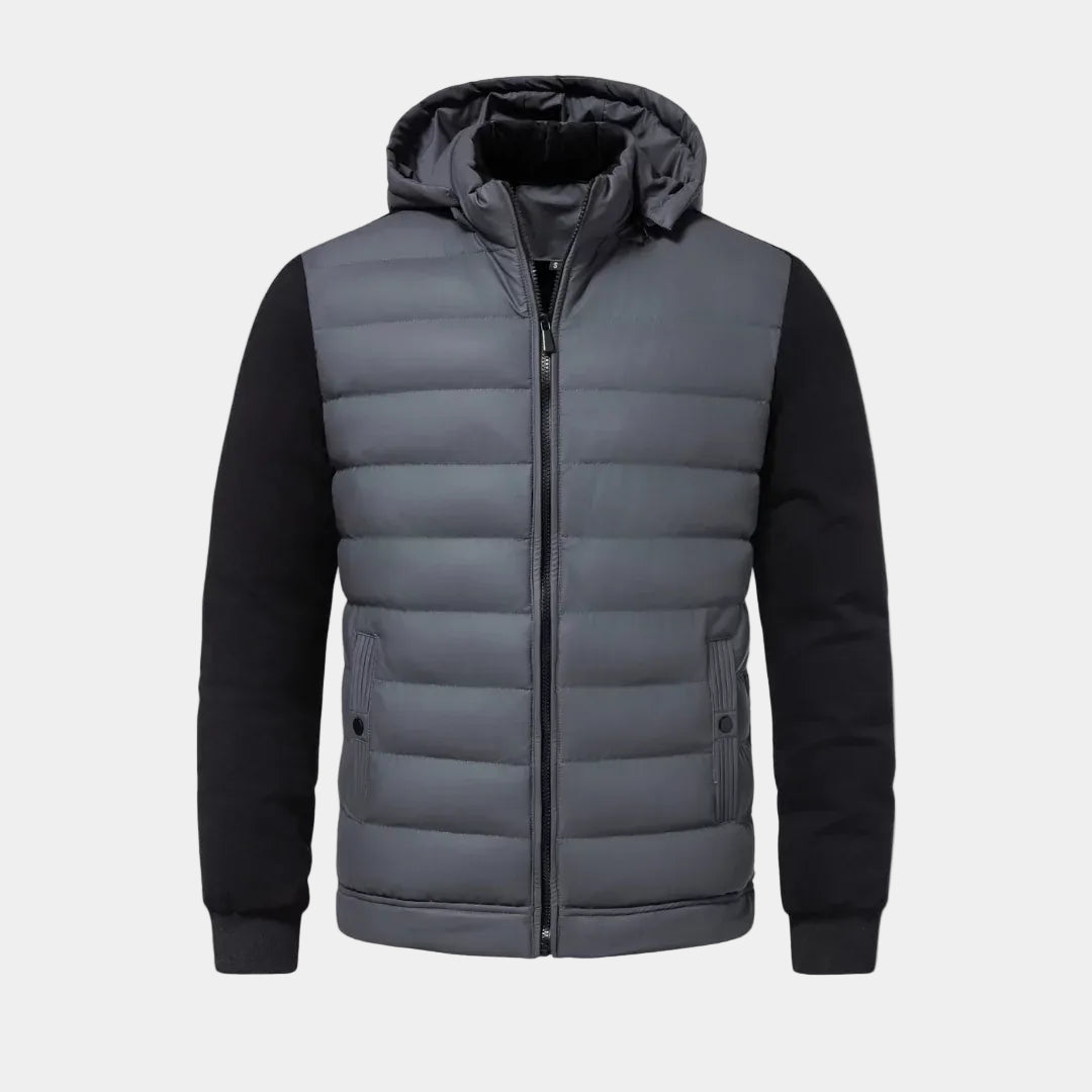 Gewatteerd Hybride Winterjas met Gebreide Mouwen en Capuchon voor Heren