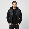 Deze hybride winterjas is ontworpen voor heren die een warme jas zoeken met een bijzondere look. Het lijf van de jas is gewatteerd en gevoerd om de warmte goed vast te houden. De mouwen zijn gemaakt van een gebreide stof, wat voor een comfortabele pasvorm zorgt. De capuchon biedt bescherming tegen kou en wind.