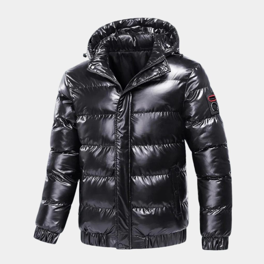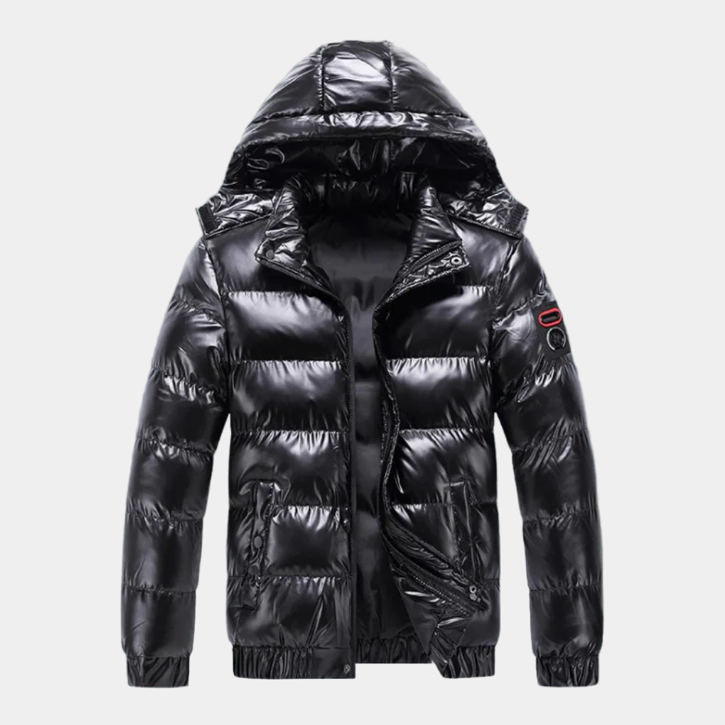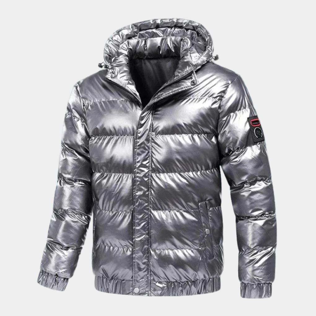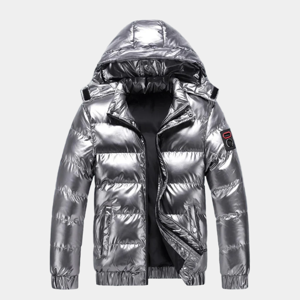 Gewatteerd Jas met Glimmende Afwerking en Capuchon voor Heren