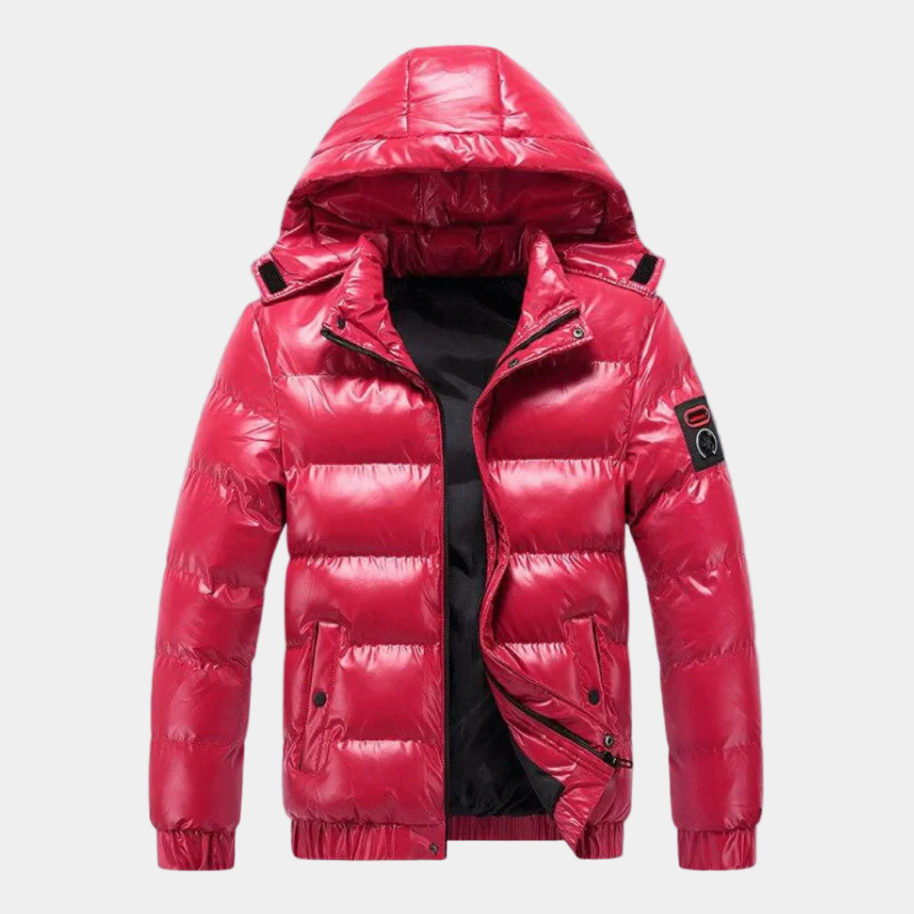 Deze gewatteerde jas is ontworpen voor heren die een opvallende en moderne look willen. De glimmende afwerking geeft de jas een moderne look die direct opvalt. De gewatteerde vulling isoleert goed tegen de kou, waardoor je lekker warm blijft. De capuchon is fijn voor onverwachte regenbuien.