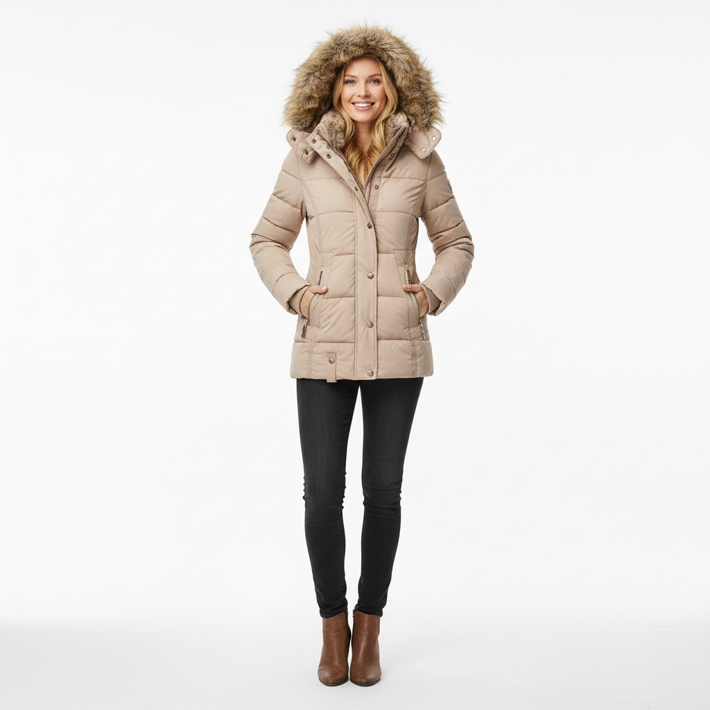 Gewatteerde Winterjas met Bont Capuchon voor Dames