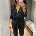 Glitter Jumpsuit met V-hals en Ceintuur voor Dames