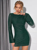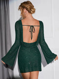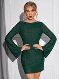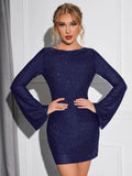 Glitter Mini Jurk met Uitlopende Mouwen voor Dames