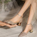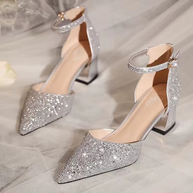 Glitter Pumps met Blokhak en Enkelbandje voor Dames