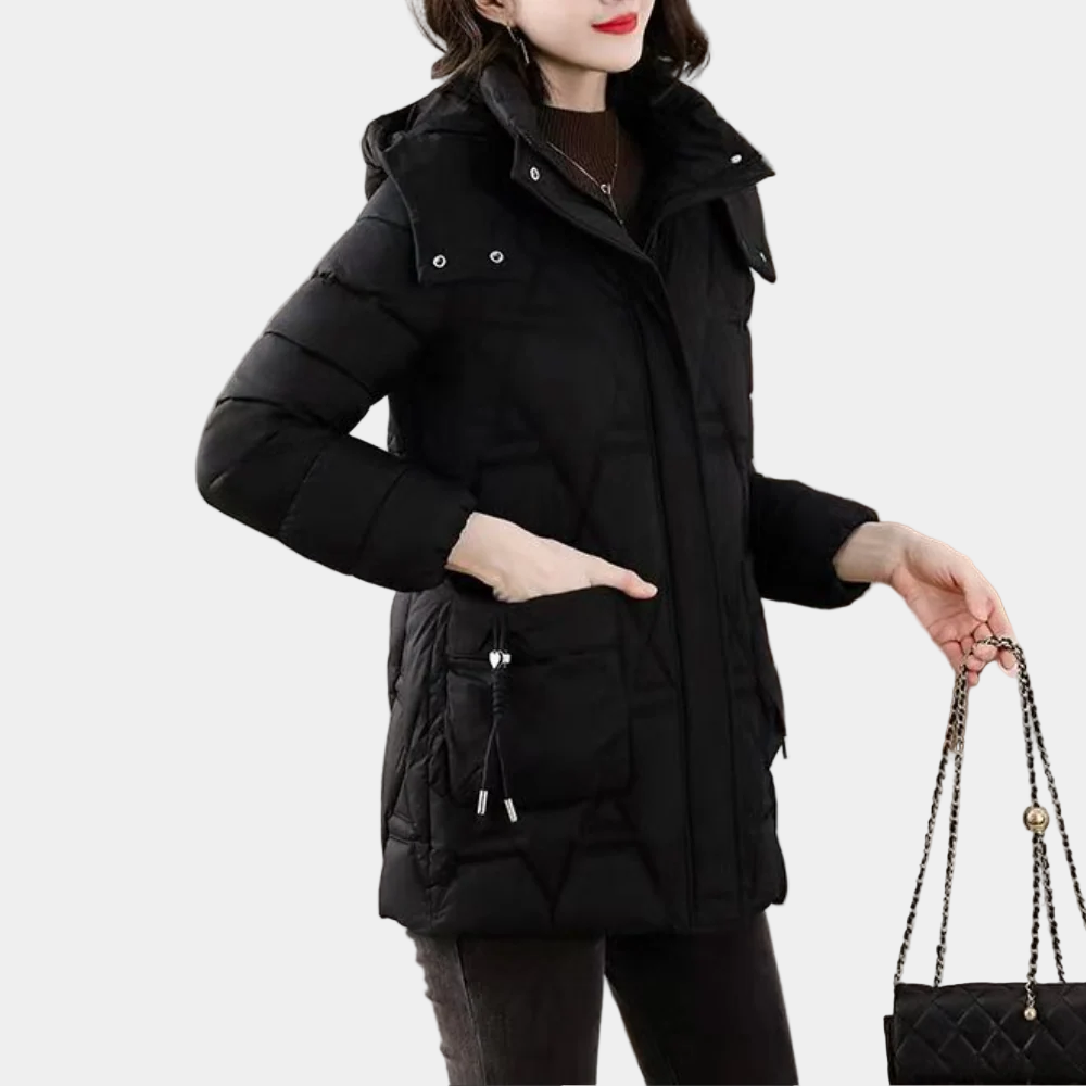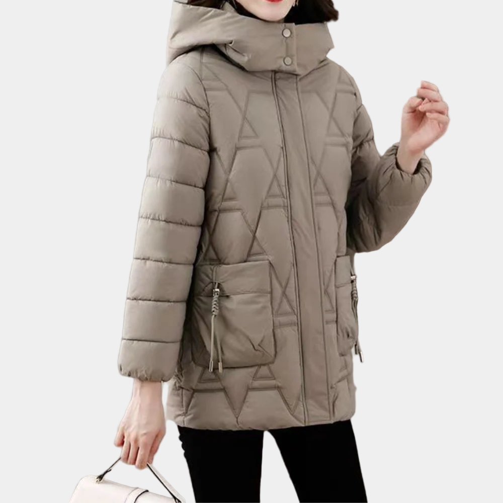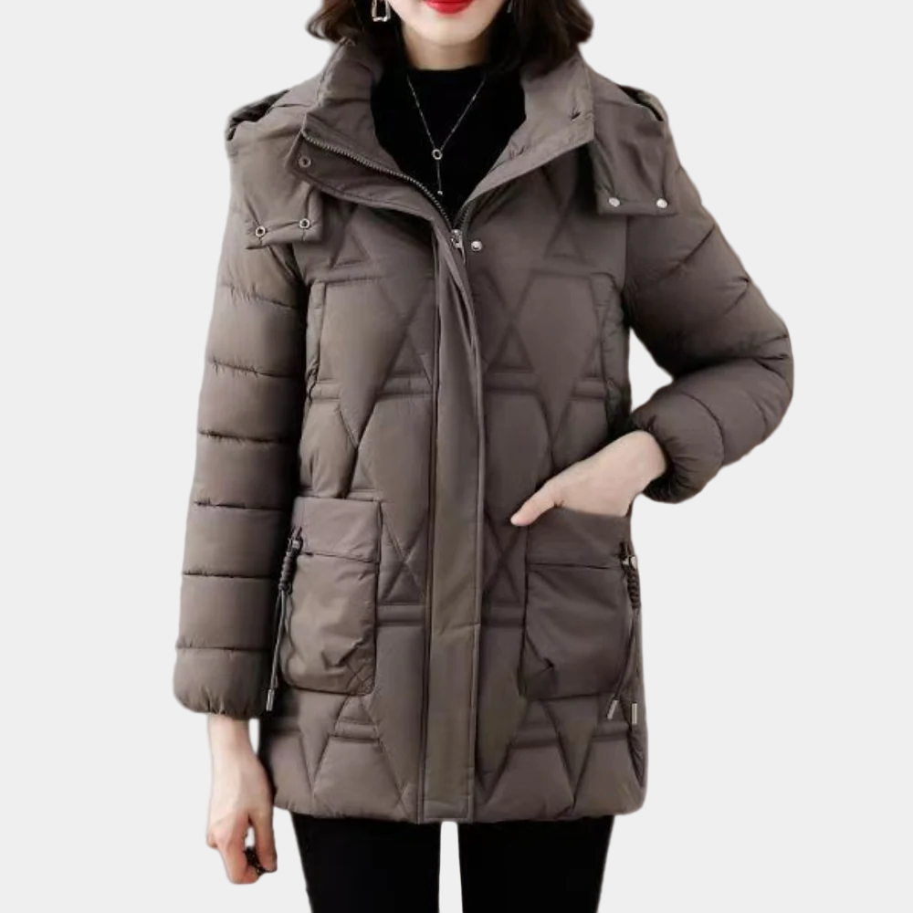 Halflange Gewatteerde Jas met Capuchon voor Dames