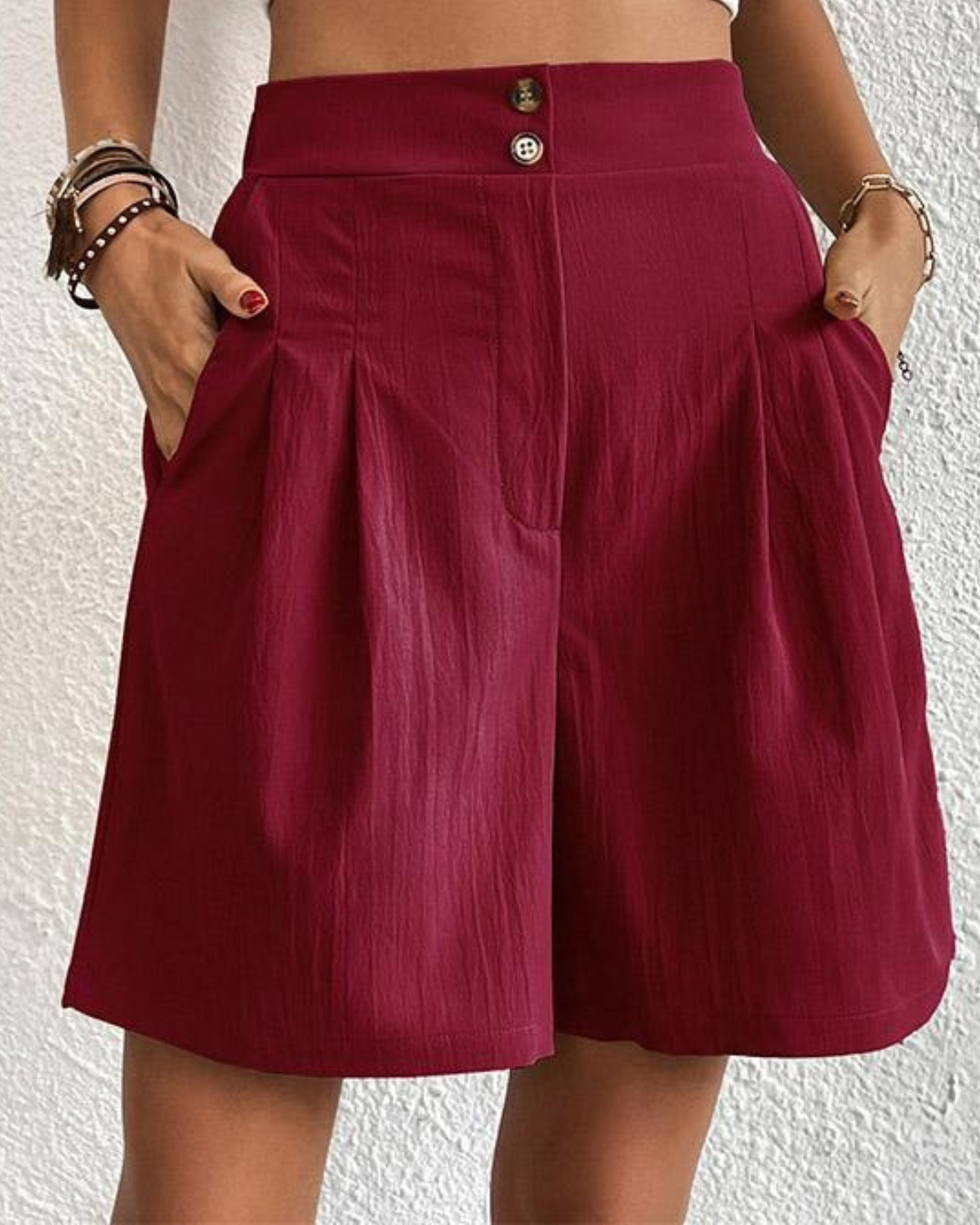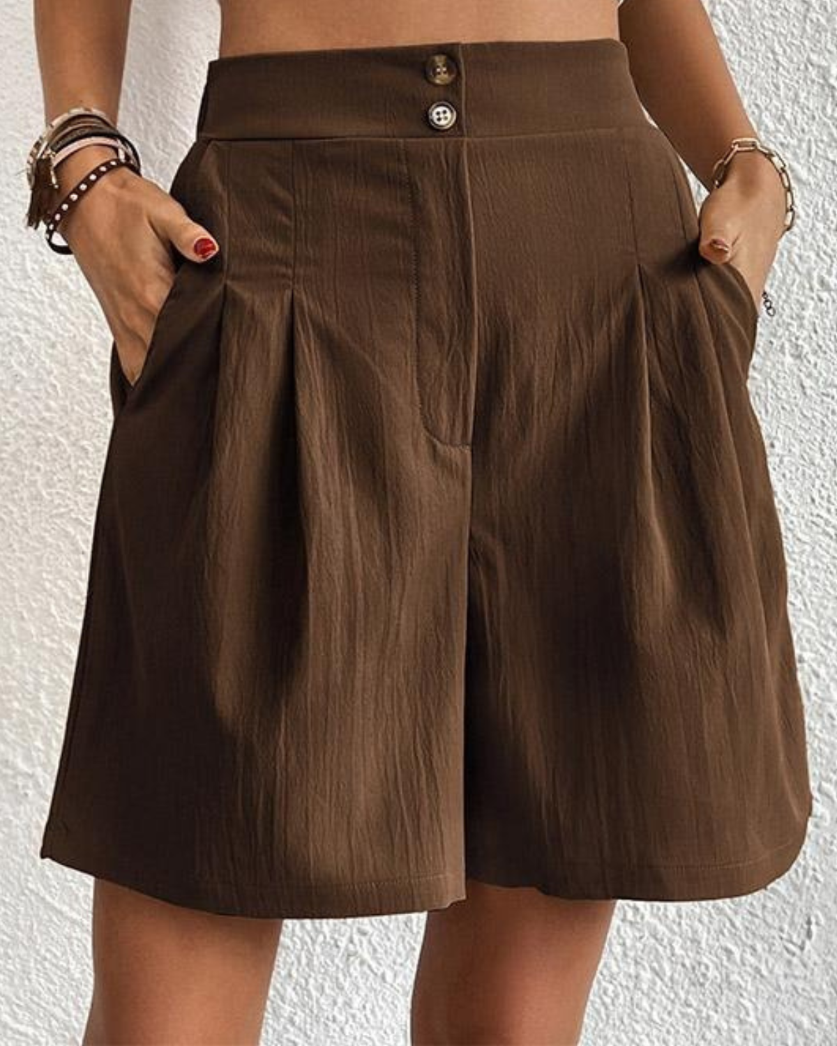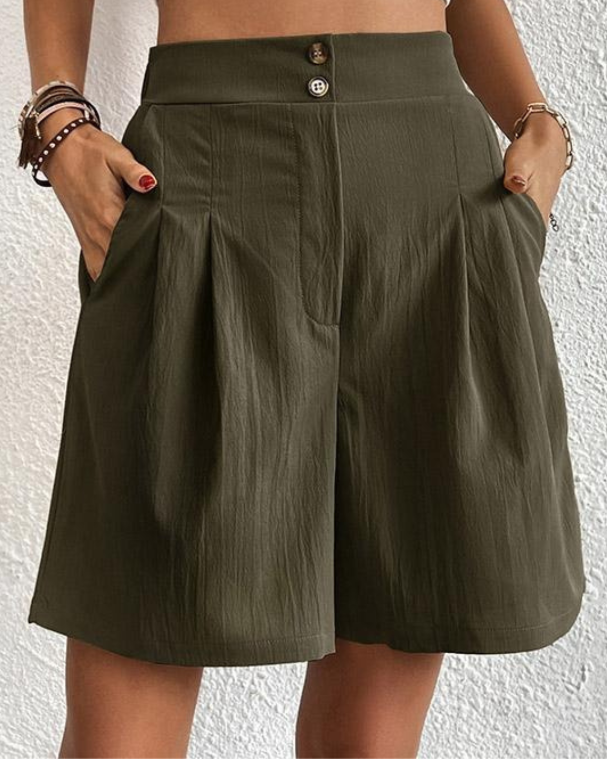 Hoge Taille Zomer Shorts met Dubbele Knoopsluiting voor Dames