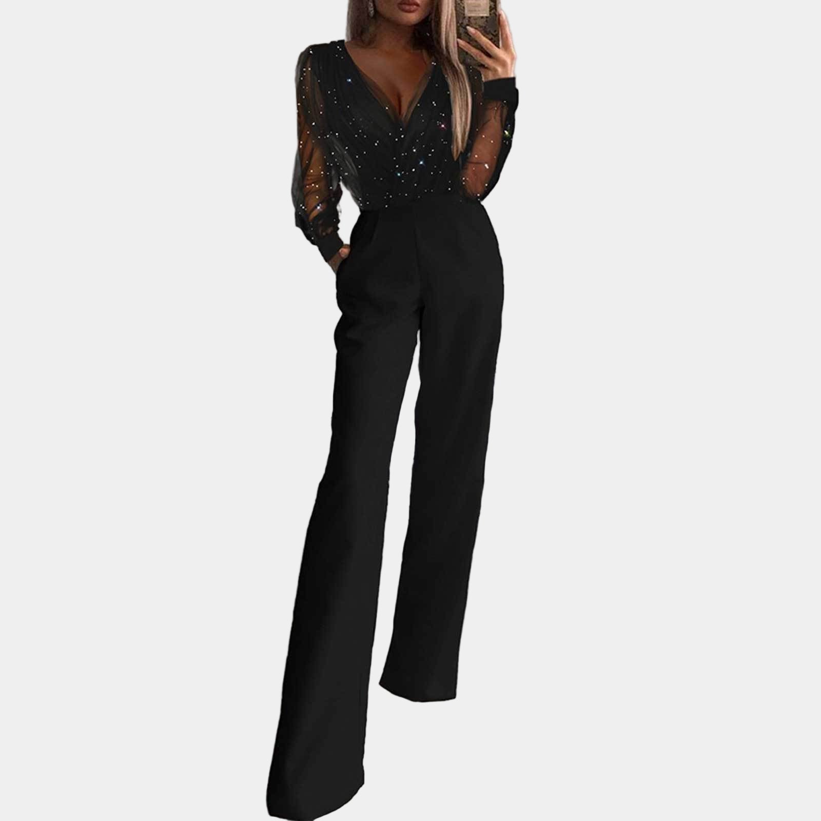 Jumpsuit met Mesh Mouwen en Strass Steentjes voor Dames