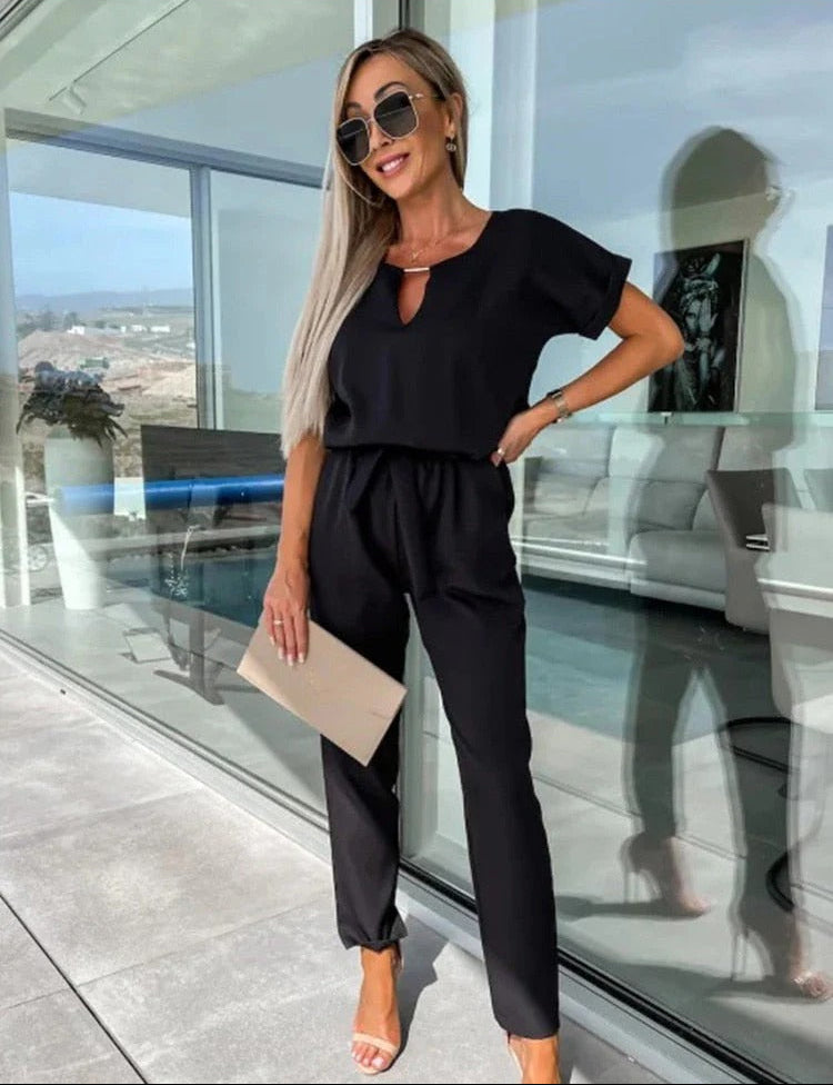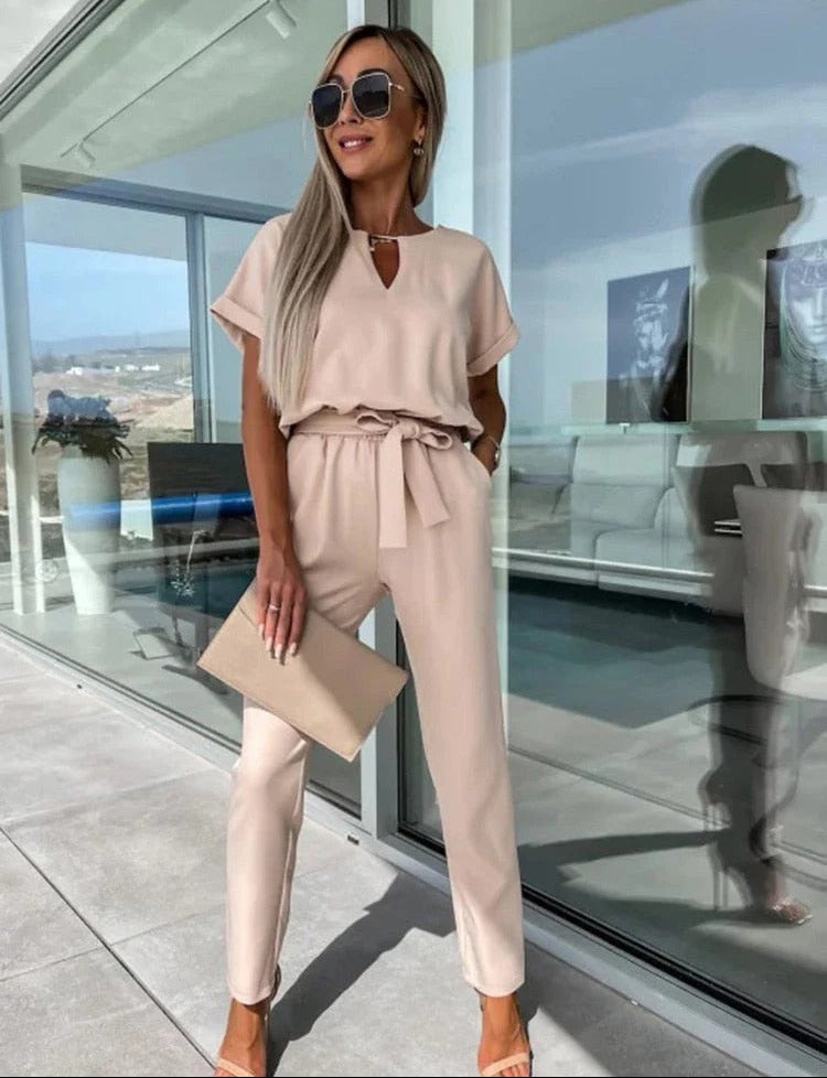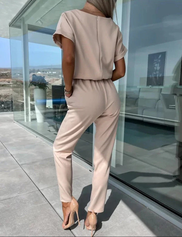 Jumpsuit met V-hals en Strikceintuur voor Dames