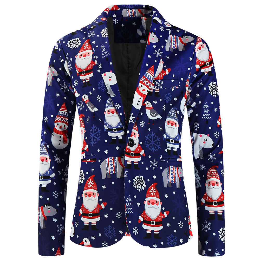 Dit Kerst Colbert met Unieke Print is gemaakt voor heren die op een feestelijke en opvallende manier de kerst willen vieren. Het Colbert is gemaakt van een nette stofmix en heeft een Unieke Kerstprint over de hele stof. De print maakt dit colbert direct geschikt voor feesten en diners. Dit Heren Kerst Colbert is perfect voor kerstborrels, diners of als humoristische toevoeging aan de feestdagenoutfit.