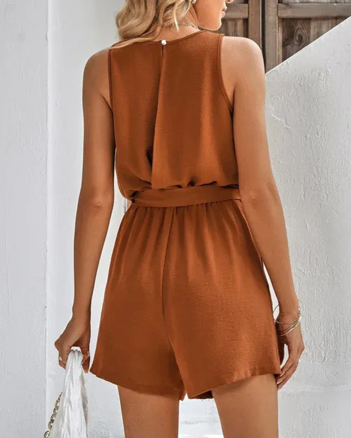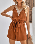 Korte Zomer Jumpsuit met V-hals en Taillestrik voor Dames