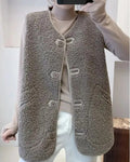 Lange Teddy Gilet met Knoopsluiting voor Dames