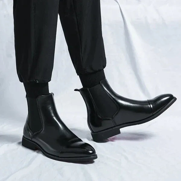 Deze leren Chelsea Boots zijn gemaakt voor heren die een nette schoen zoeken met een beetje extra. Het glanzende leer geeft de laarsjes een strakke en verfijnde look. Dit maakt ze ideaal om onder een pantalon of net pak te dragen. Door de glanzende afwerking zien ze er netjes uit, maar ze zijn nog steeds comfortabel genoeg voor een hele dag. Ze zijn een onmisbaar item voor kantoor of een avondje uit.