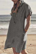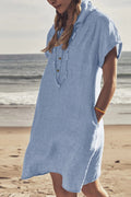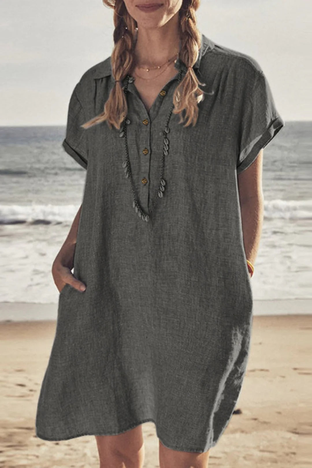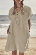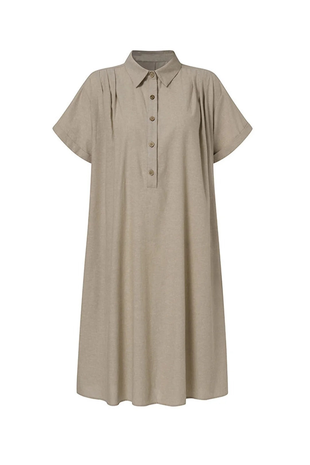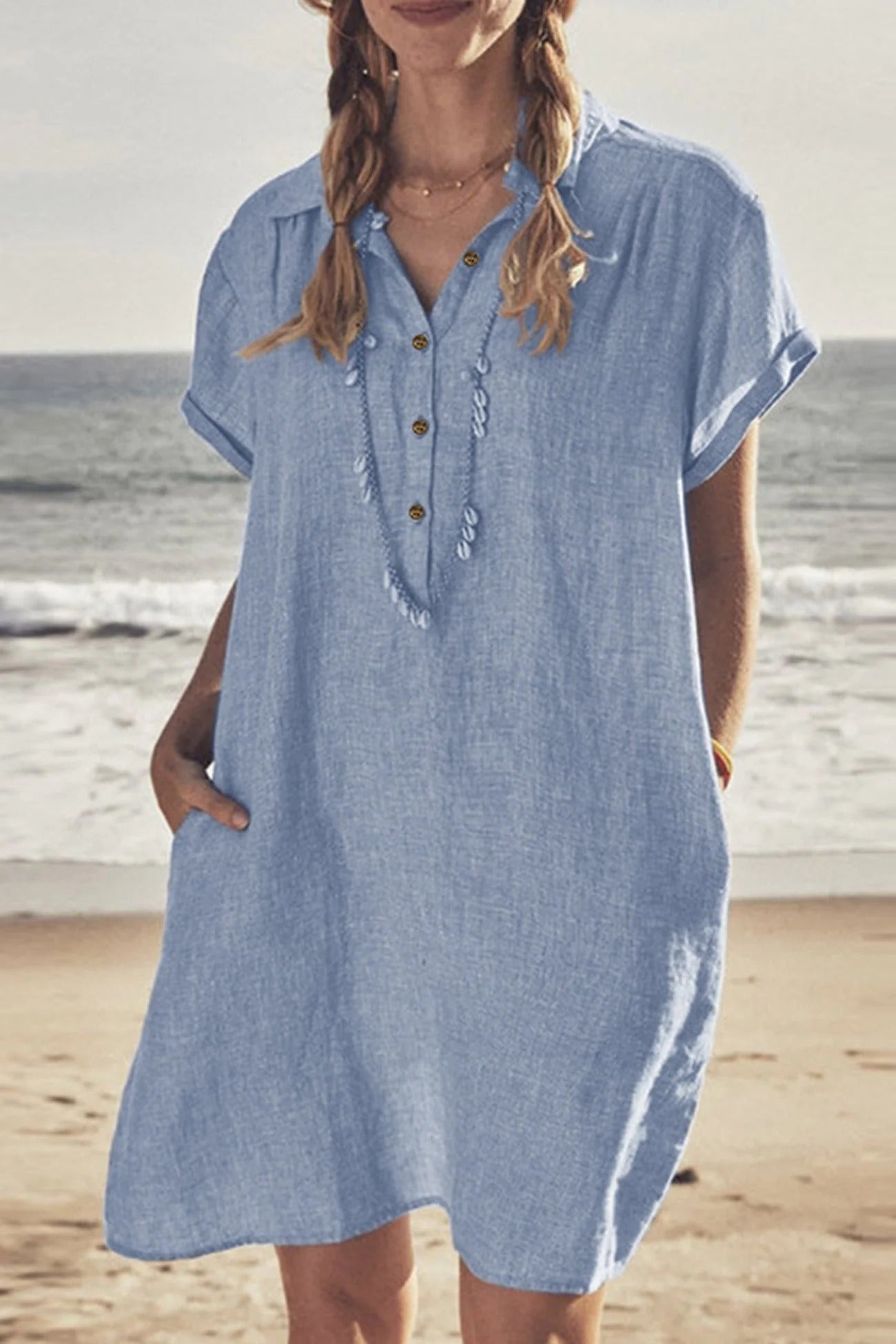 Deze mini blousejurk voor dames is gemaakt van een luchtige linnen mix waardoor je huid goed kan ademen op warme dagen. Het model heeft een klassieke kraag en een knoopsluiting aan de voorzijde wat zorgt voor een verzorgde uitstraling die toch heel ontspannen aanvoelt. Dankzij de korte mouwen met een kleine omslag en de handige steekzakken aan de zijkant geniet je van veel bewegingsvrijheid en praktisch gemak. De losvallende pasvorm valt soepel om je lichaam en biedt een luchtig gevoel tijdens het dragen in de zomer of het voorjaar. Dit kledingstuk is ideaal voor een dagje naar het strand, een ontspannen lunch of dagelijks gebruik in de vrije tijd.