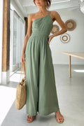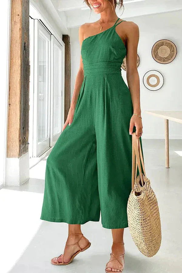Linnen One-Shoulder Jumpsuit met Wijde Pijpen voor Dames
