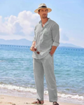 Linnen Set met Lange Mouw Shirt en Broek voor Heren