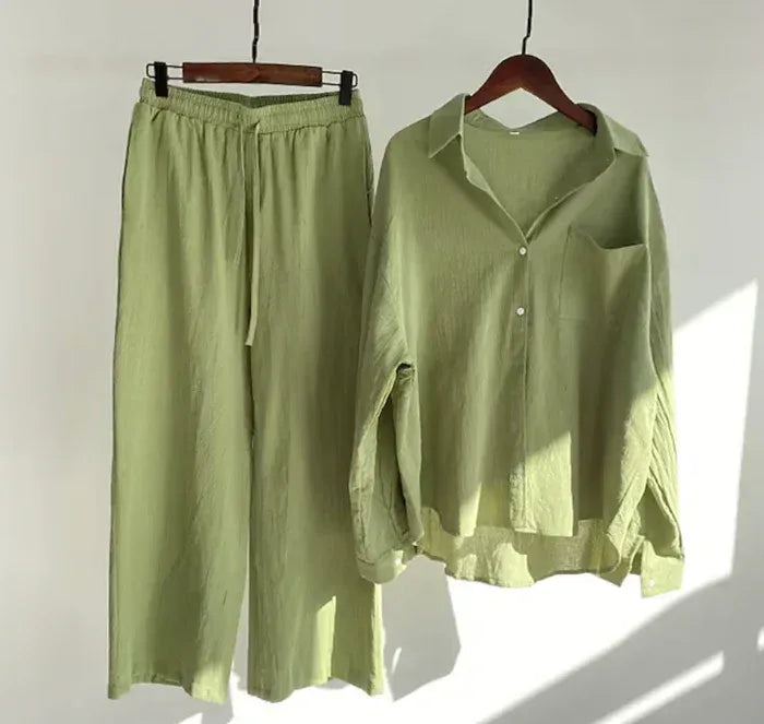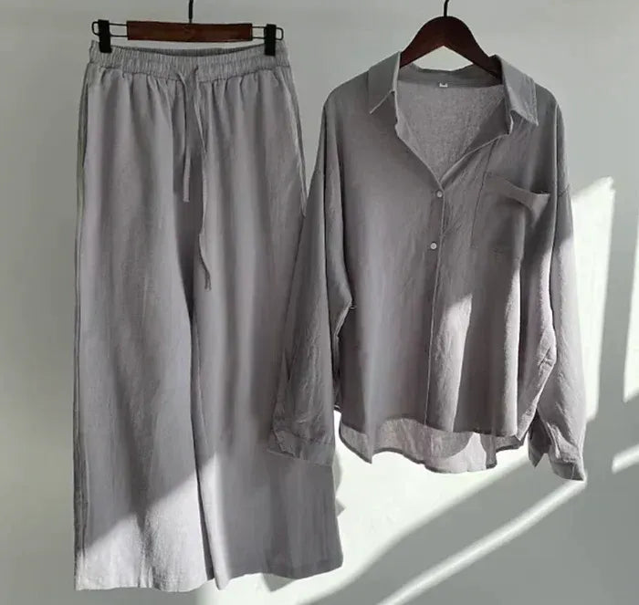 Linnen Set met Oversized Blouse en Wijde Broek voor Dames