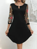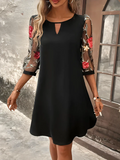 Deze mini jurk voor dames combineert stof met mouwen van mesh voor een vrouwelijke en verfijnde uitstraling. De mouwen zijn gedecoreerd met een kleurrijk bloemenpatroon dat een speels accent geeft, terwijl de uitsparing bij de halslijn zorgt voor een modern effect. Dankzij de losse pasvorm biedt de jurk veel bewegingsvrijheid, of je nu een middag gaat lunchen of een avond uitgaat. Je combineert dit item gemakkelijk met accessoires voor een verzorgde verschijning die in elk seizoen gedragen kan worden. Dit kledingstuk is ideaal voor feesten, speciale gelegenheden, een diner of een avondje uit.