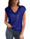 Pailletten Top met V-Hals en Korte Mouwen voor Dames