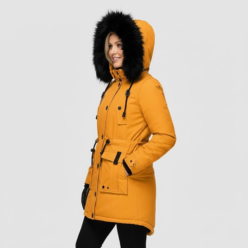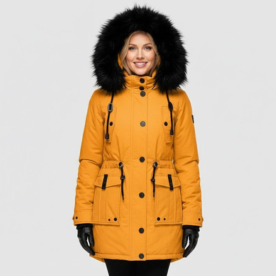 Deze parka is ontworpen voor dames die een praktische en stoere jas zoeken die je warm houdt in de winter. De jas is gemaakt in een utility stijl, met handige zakken en een stevige stof. De kraag met zacht bont geeft extra warmte en is een leuk detail. Dit is een stevige winterjas die geschikt is voor een wandeling, een dag in de natuur of een casual dag in de stad.