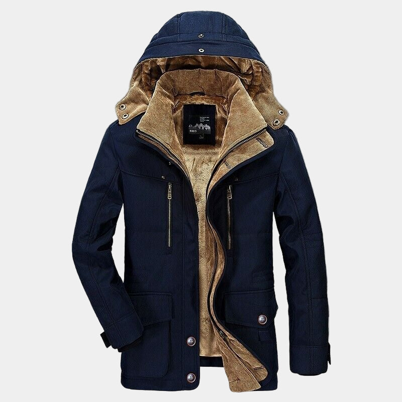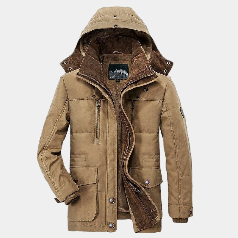 Deze Parka is gemaakt voor heren die een zeer warme, lange en praktische jas zoeken. De jas valt lang en biedt veel bedekking en warmte. De binnenkant is gevoerd met zacht fleece, wat zorgt voor extra warmte en comfort. De capuchon biedt bescherming tegen regen en wind.