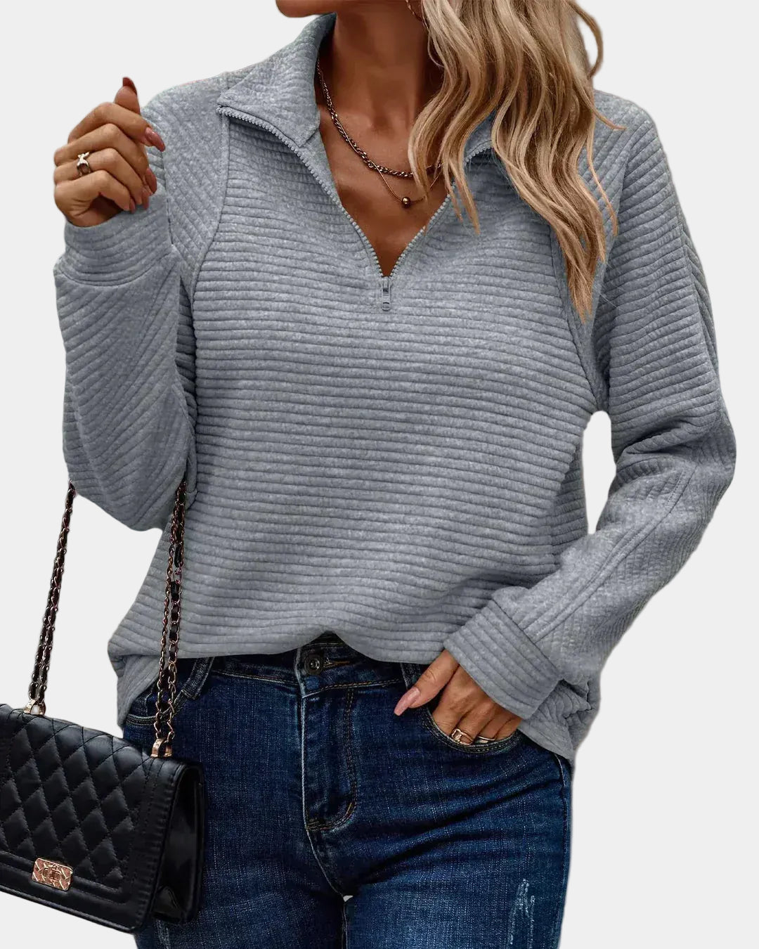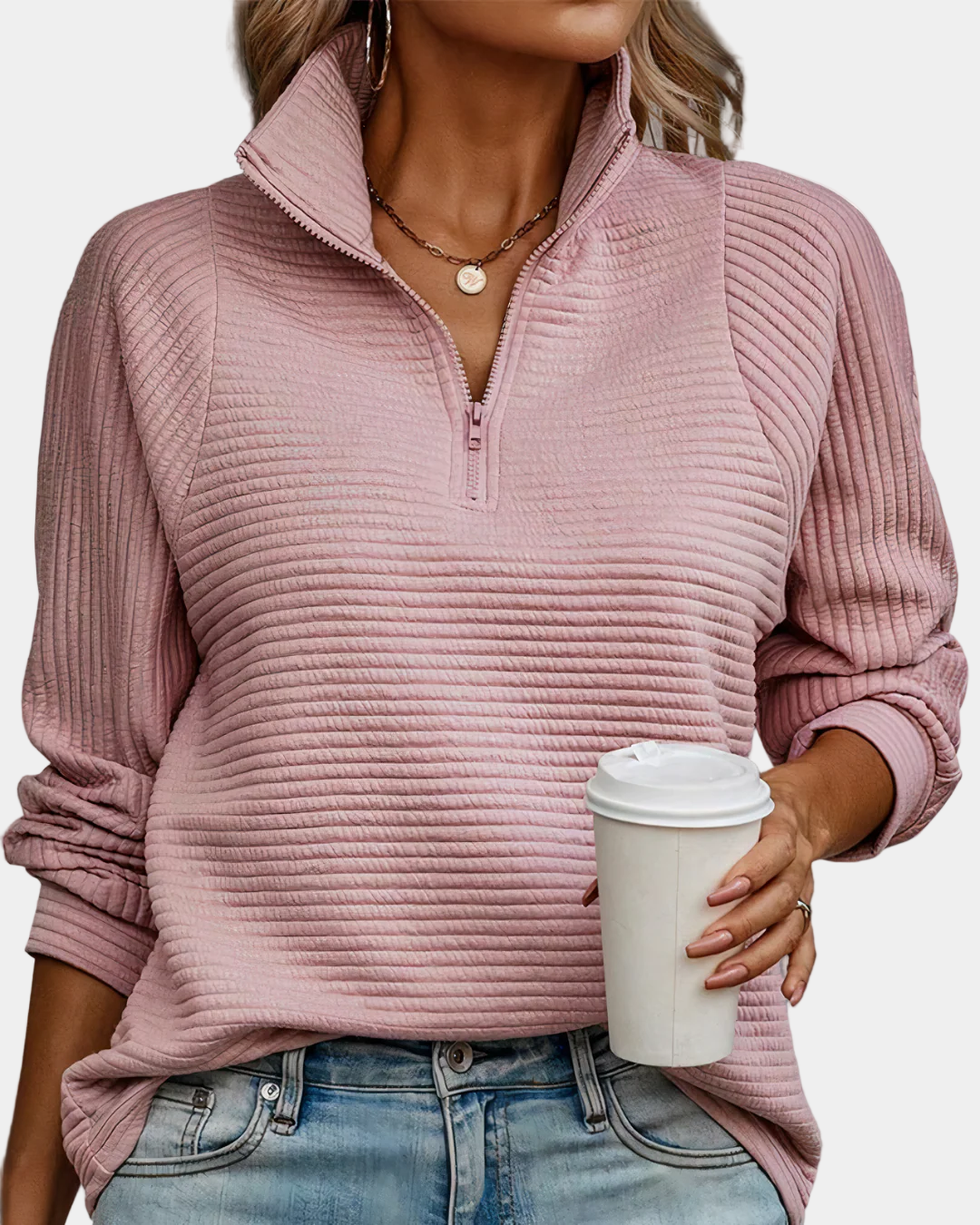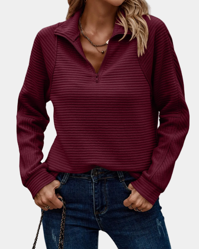 Pullover met Halve Rits en Ribpatroon voor Dames