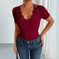 Korte Kanten Mouwen: Het kant detail geeft de top een elegante en vrouwelijke twist.