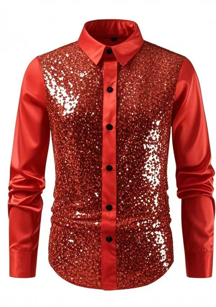 Dit Satijnen Glitter Overhemd is ontworpen voor heren die een nette en opvallende look zoeken voor feesten. De body van het overhemd is bedekt metΒ Pailletten, wat zorgt voor een enorme schittering. De kraag, knopenlijst en de Lange Mouwen zijn gemaakt van een gladde, satijn- of metallic-achtige stof die rijk glanst. De combinatie van de glans en de glitters maakt dit overhemd direct feestelijk. Dit Heren Overhemd is perfect voor themafeesten, optredens of gala's en garandeert een chique uitstraling.