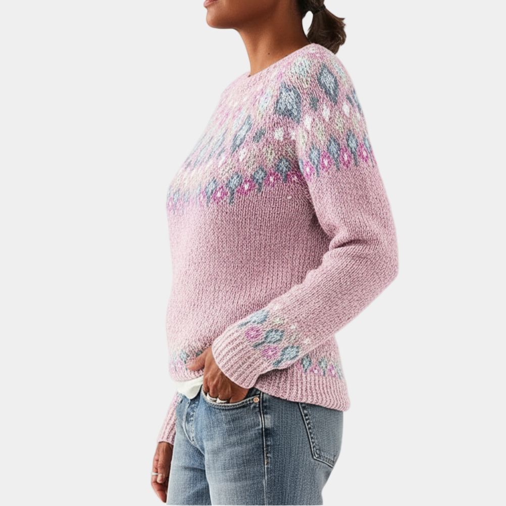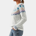 Zoek je een trui met een uniek patroon? Deze Scandinavische trui voor dames heeft een gebreid patroon en is een comfortabel item voor koudere dagen. Het is een veelzijdig kledingstuk dat je kunt combineren met een spijkerbroek of een rok.