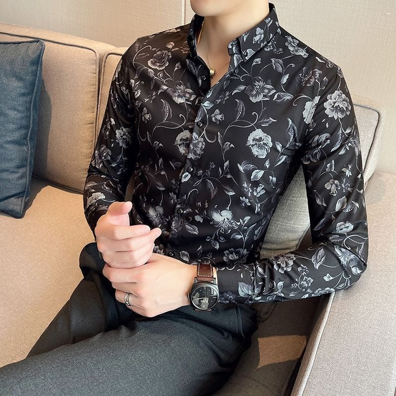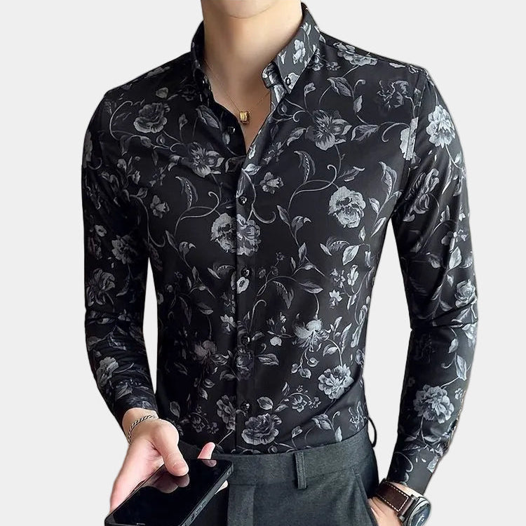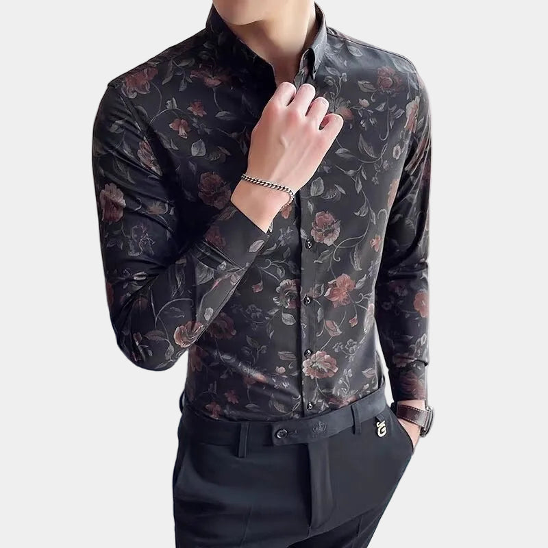 Slim Fit Overhemd met Rozenmotief voor Heren