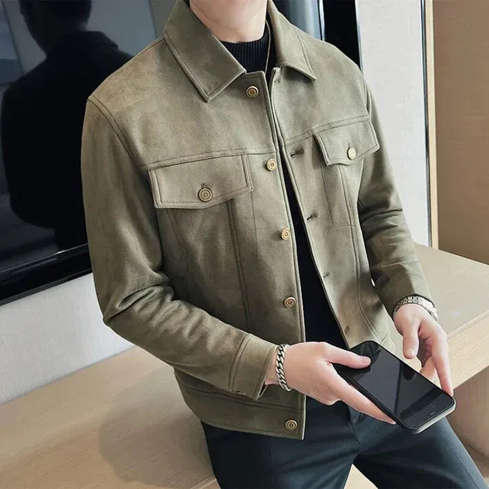 Slim Fit Suede Tussen Jas met Kraag voor Heren