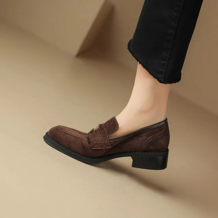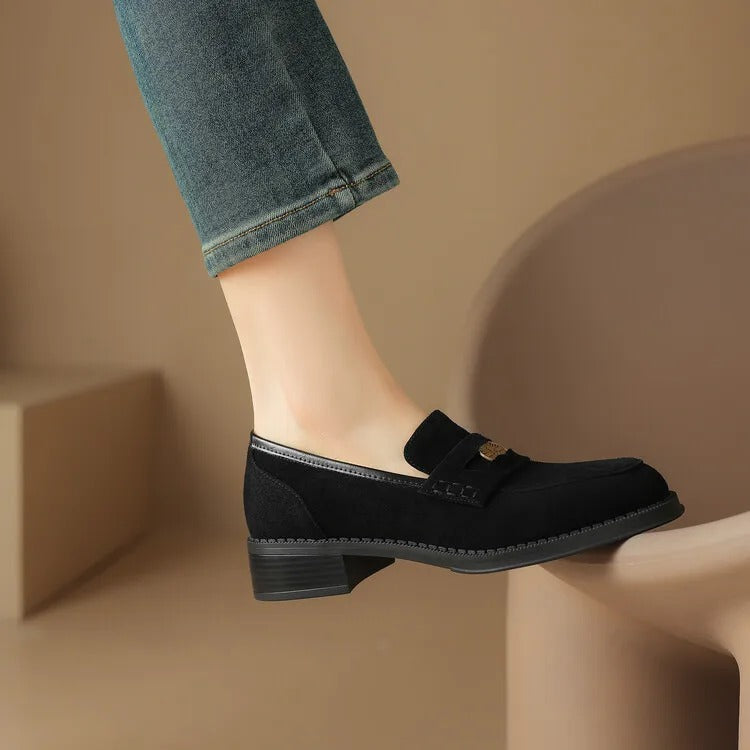 Suède Loafers met Blokhak voor Dames